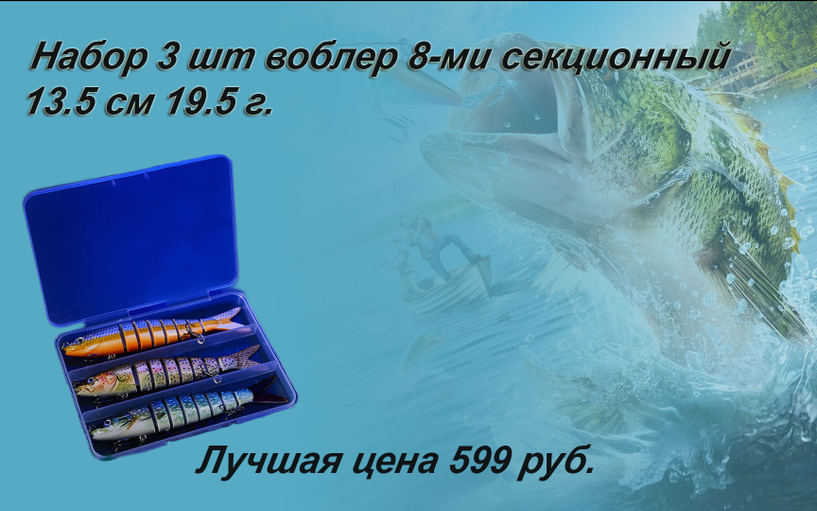 Искусственная приманка набор 3 шт воблер 8-ми секционный 13.5 см 19.5 г. Составные воблеры искусственная приманка, которая среди отечественных рыболовов...