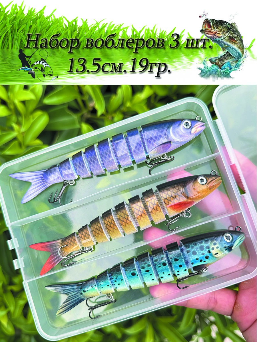 Искусственная приманка набор 3 шт воблер 8-ми секционный 13.5 см 19.5 г.